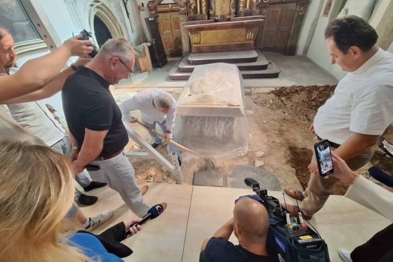 Co se skrývá pod náhrobní deskou Arnošta z Pardubic? Archeologové použili sondu