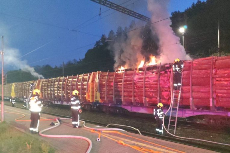 Na jedoucím vlaku začalo hořet dřevo