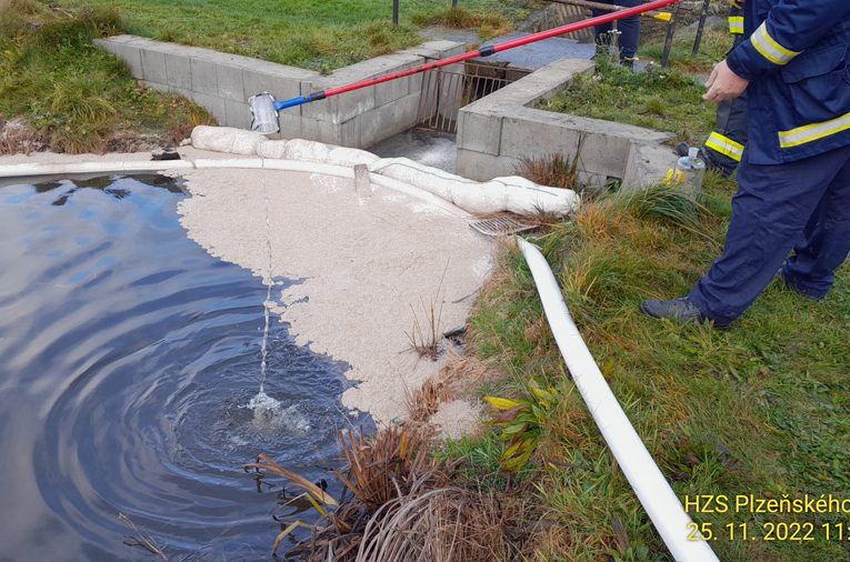 Na jeho hladině se totiž objevila skvrna neznámé látky. „Pomocí sorpčních hadů a sorbentu jsme zamezili jejímu dalšímu úniku. Laboratoř Třemošná odebrala vzorky látky samotné, i vody dále po proudu odtoku z rybníku,“ uvedl k události mluvčí hasičů Petr Poncar.