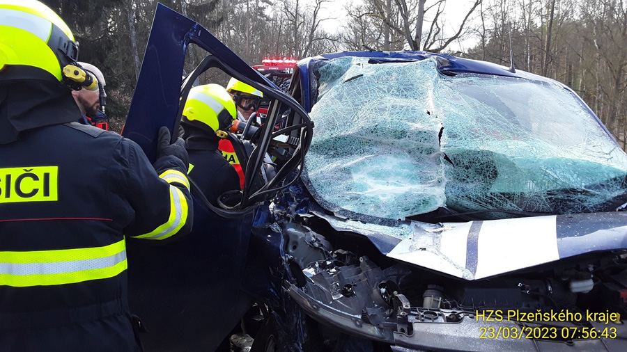 Řidič (1973) dodávky Ford Transit, který jel ve směru od Plzně na Kaznějov, bohužel nedodržel bezpečnou vzdálenost za náklaďákem Daf, který řídil řidič (2000). Ten náhle začal zpomalovat v důsledku dopravní situace před ním a došlo k nepříjemnému střetu. „Řidič a s spolujedoucí(2002) z dodávky byli převezeni k lékařskému ošetření. Alkohol byl u řidičů vyloučen dechovou zkouškou. Komunikace je v místě dopravní nehody průjezdná kyvadlově. Přesnou příčinou a veškerými okolnostmi se zabývají dopravní policisté z územního odboru Plzeň venkov,“ uvedla mluvčí policie Eva Červenková. „Spolujezdce z dodávky jsme vyprostili pomocí hydraulického náčiní. Společně s řidičem byli předáni zdravotní záchranné službě. Komunikace bude uzavřena delší dobu. Nehoda blokuje provoz,“ dodal mluvčí hasičů Petre Poncar. „Z místa nehody záchranáři transportují muže ročník 1973 a 2002 oba se středně těžkými zraněními při vědomí na akutní příjem Fn-Lochotín,“ doplnila informace mluvčí záchranářů Mária Svobodová.