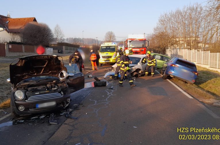 Střet čtyř osobních aut ve Starém Plzenci
