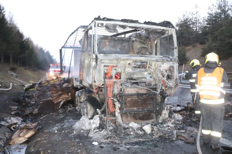 Požár kamionu uzavřel dálnici D5 ve směru na Prahu
