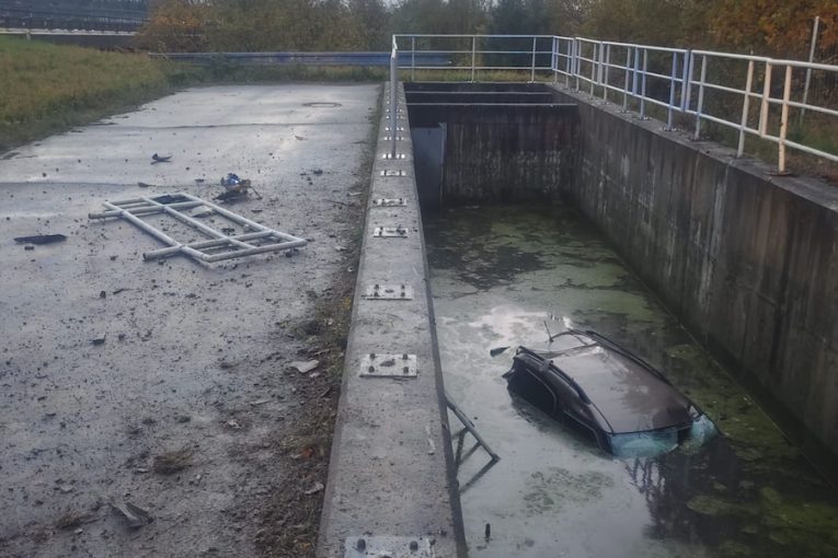Drama na D5: Mladý řidič strhl volant a skončil v usazovací nádrži!