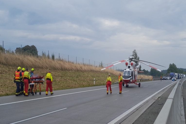 Motorkář havaroval na D5, na místě zasahoval i vrtulník!