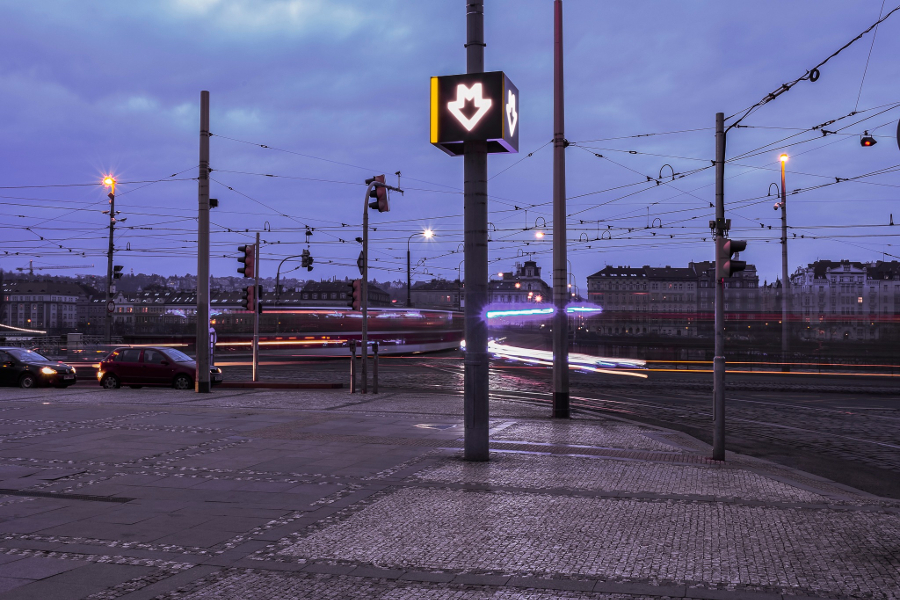 Dopravnímu podniku přitom nejde o označení samotných vstupů do metra. „Cílem těchto prvků je dát člověku, který jde třeba po nábřeží nebo po mostě, na dálku najevo, že zde je metro,“ říká mluvčí Pražské integrované dopravy Filip Drápal. „Jakmile jste blízko, vstup už najdete,“ dodává mluvčí. Podle něj budou další taková označení umisťována na další místa, ať už v rámci stávajících sloupů veřejného osvětlení či objektů metra, nebo i jako samostatně stojící na vlastní noze.