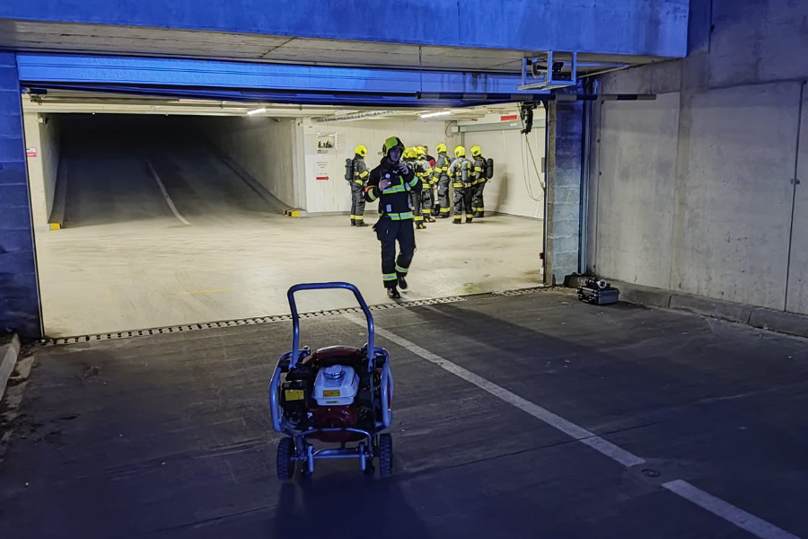 Menší požár v motorové části vozidla v podzemní garáži ohlásil hasičům systém elektronického hlášení krátce před 9 hodinou večerní. „Na místo přijely tři profesionální jednotky hasičů a jedna dobrovolná,“ říká mluvčí pražských hasičů Martin Kavka. Ze zakouřeného domu hasiči do připraveného evakuačního autobusu dobrovolných hasičů z Řeporyjí vyvedli 80 lidí. Dorazili i zdravotníci s velkokapacitní sanitkou Fénix. Tu naštěstí nikdo nepotřeboval. „Bylo potřeba celý dům odvětrat přetlakovou ventilací,“ dodává Martin Kavka. Zásah se tak protáhl do večerních hodin.