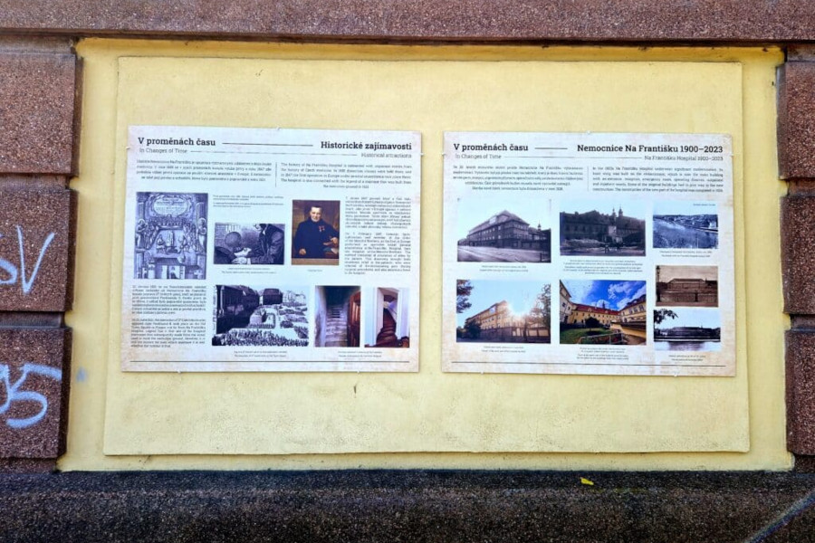 Výstava s názvem „V proměnách času“ zachycuje historický vývoj Nemocnice Na Františku od jejího založení v roce 1354 až do současnosti. Ředitel nemocnice David Erhart ji slavnostně zahájil v pondělí 3. července a ke zhlédnutí bude na Dvořákově nábřeží od července do září. Historické fotografie a kresby poskytlo Muzeum města Prahy. Na osmi výstavních panelech umístěných na zdi nemocničního areálu se zájemci dozví řadu historických zajímavostí a podívají se, jak nemocnice vypadala v 17. století nebo na začátku 20. století, kdy byla dostavěna její nábřežní část. Část expozice je věnovaná i novodobým událostem, včetně povodní v srpnu 2002. Návštěvníci si mohou prohlédnout, jak byla nemocnice a její okolí zasaženy při povodních, a porovnat její proměnu v následujících dvou letech, kdy interiéry i exteriéry nemocnice prošly rozsáhlou rekonstrukcí a modernizací. Závěr výstavy je pak věnován současné podobě nemocnice. Výstavu si můžete prohlédnout zdarma, texty jsou psané v češtině a angličtině.