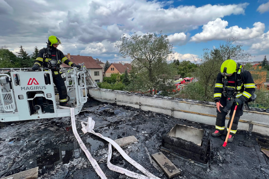 Hořet začalo v ulici Olšinské, na místo se vydali hasiči ze strašnické, satalické a holešovické stanice. „Po příjezdu první jednotky na místo bylo zřejmé, že plameny zachvátily střechu domu v plném rozsahu,“ říká mluvčí pražských hasičů Martin Kavka. Hasiči nasadili jeden vodní proud vnitřkem budovy, druhý po výškové technice na střechu. Požár ploché střechy zničil fotovoltaické panely a klimatizační jednotku, zničena byla i izolace a dřevěné podbití na ploše 10 x 12 metrů. „Ve 14:45 hodin byla ohlášena lokalizace požáru a následovalo dohašování a rozebírání ohořelých částí střechy,“ dodává mluvčí. Událost se obešla bez zranění, hasičům se dokonce z domu podařilo zachránit křečka i s jeho příbytkem.