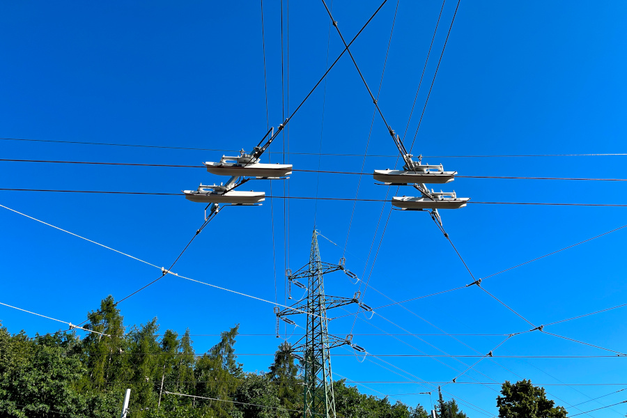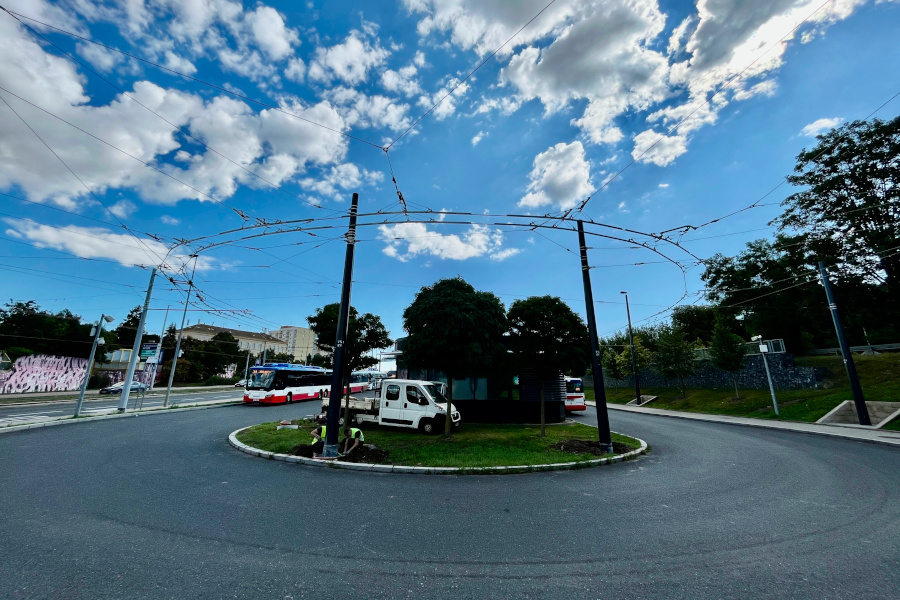 V ulicích Evropská a K Letišti už stojí téměř všechny stožáry a na podstatné části trati už dělníci natáhli troleje. Dokončeno je také křížení s tramvajovými trolejemi u Nádraží Veleslavín a u vozovny Vokovice. Na samotném letišti jsou hotové odstavy a připravuje se i měnírna, kterou bude potřeba stejně jako tu u Nádraží Veleslavín a garážích Řepy dovybavit příslušnou technologií.