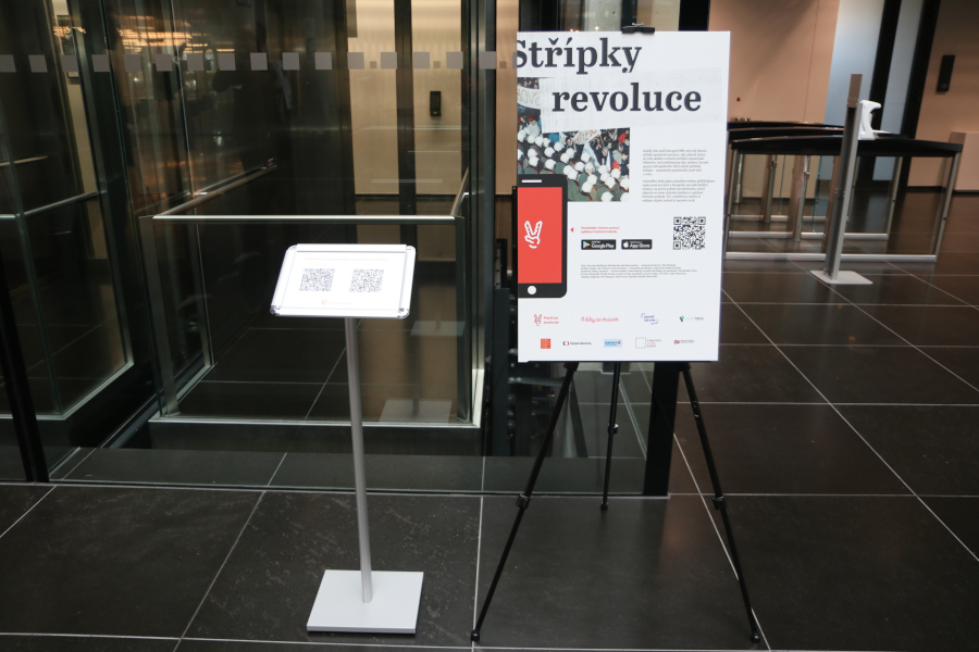 Sametovou revoluci si ovšem Třináctka nepřipomíná jen odhalením lavičky, ale také výstavou nazvanou Střípky revoluce. Ta zaznamenává průběh a svědectví toho, co se dělo v listopadových dnech a po listopadových dnech v roce 1989. Panely s texty a fotografiemi najdete v prostorách Business Centre Aspira. Výstava se ovšem nespoléhá jen na ně, ale využívá rozšířenou realitu. V aplikaci Festival svobody si tak můžete některé obrázky rozpohybovat a vidíte v podstatě videozáběry s titulky. Výstava tak nabízí výrazně více informací, než kolik najdete na panelech. Aplikaci si zájemci mohou stáhnout pomocí QR kódů uvedených na panelech a v ní si pak rozkliknout tlačítko ‚rozšířená realita‘. Pak už stačí jen namířit fotoaparát telefonu na obrázky na panelech a z nich se v telefonu spustí video.