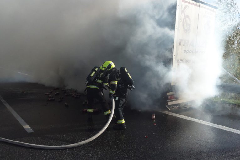 Z návěsu kamionu na D11 se kouřilo, doprava stála