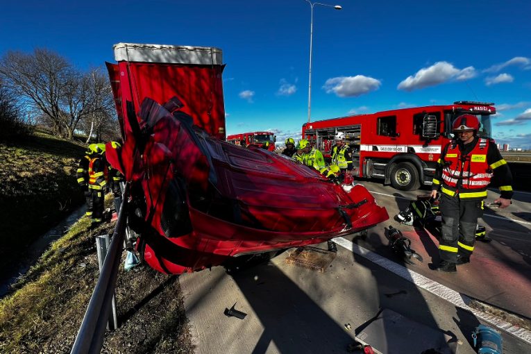 Srážka kamionů na Pražském okruhu: řidič skončil v umělém spánku