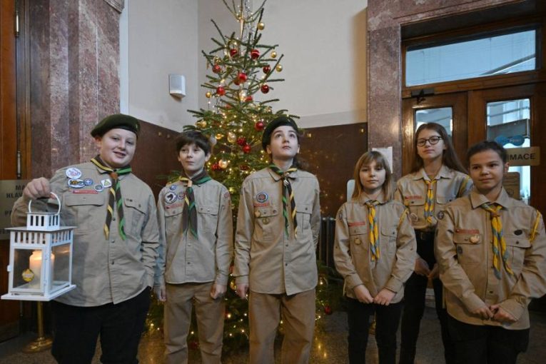 Skauti přivezli Betlémské světlo na Novou radnici