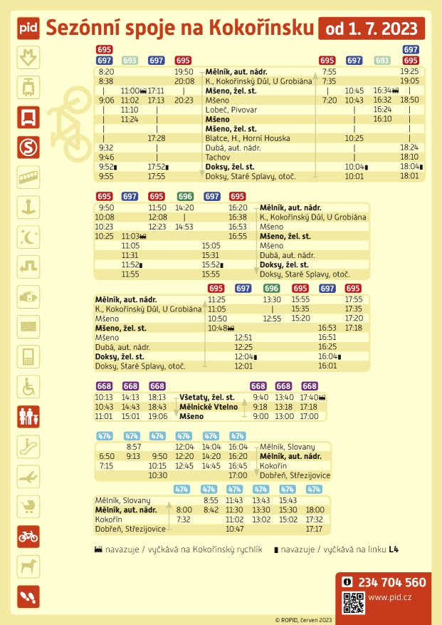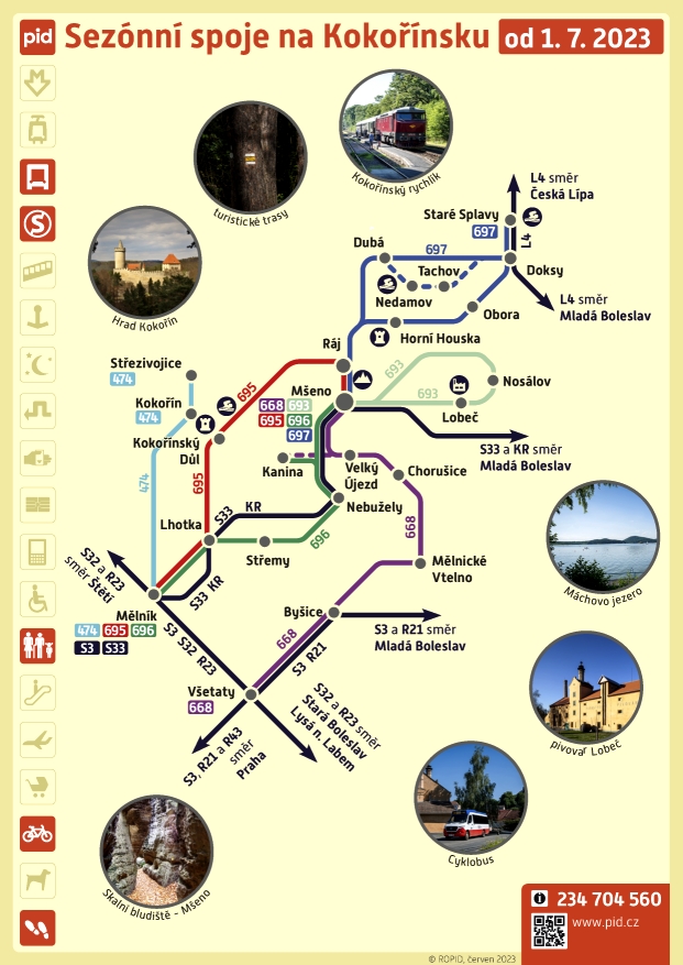 Kromě cyklobusu na Kokořínsku jsou do systému PID zapojeny další dvě autobusové sezonní linky, a to v oblasti Brd a Českého ráje. Cena za přepravu jízdního kola je stanovena na 20 korun.