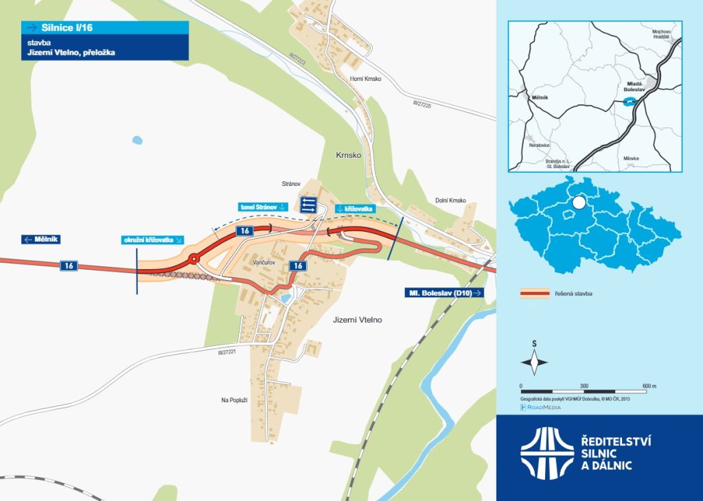 Přeložka začíná před Vtelnem, kde se trasa odklání od silnice I/16 směrem na severovýchod. Silnice povede obloukem kolem zemědělského areálu a klesne až k novému tunelu o délce 270 metrů. Ten vznikne kvůli překonání převýšení 53 metrů v úseku mezi obcí a zámkem Stránov. V místě stoupání směrem na Mladou Boleslav přibude také stoupací pruh o délce 930 metrů. „Předpokládáme, že díky tomuto uspořádání se doprava výrazně zklidní,“ zmínil Jiří Veselý, tiskový mluvčí Ředitelství silnic a dálnic.