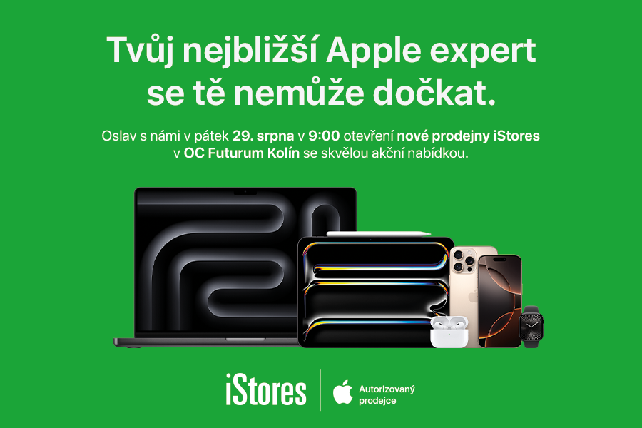 Pouze v den otevření budou vybrané produkty k dostání za zvýhodněné ceny – například iPhone 16e za 14 490 Kč, MacBook Air M4 od 22 990 Kč nebo bezdrátová sluchátka AirPods 4. generace za 2 990 Kč. Slevy platí pouze v nové kolínské prodejně a pouze 29. srpna od 9:00 do 20:00.