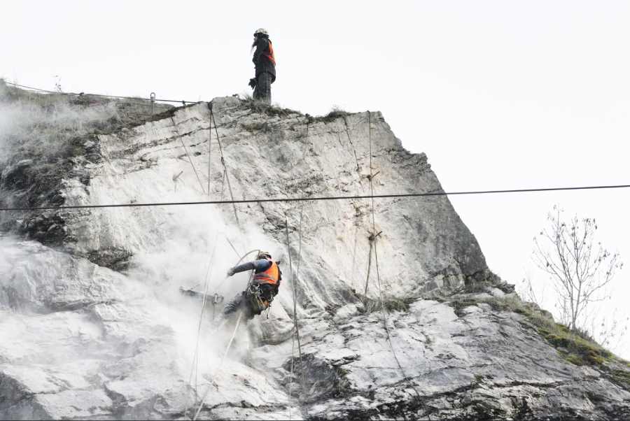 Náročnou kapitolou bylo zajištění skalních masivů nad tratí. Práce v těžko dostupném terénu probíhaly s využitím horolezecké techniky a s ohledem na chráněné druhy rostlin a živočichů. Přes koleje migrují například užovky podplamaté, kterým dálkový přesun mezi skalami a řekou usnadňují propustky pod kolejištěm.
