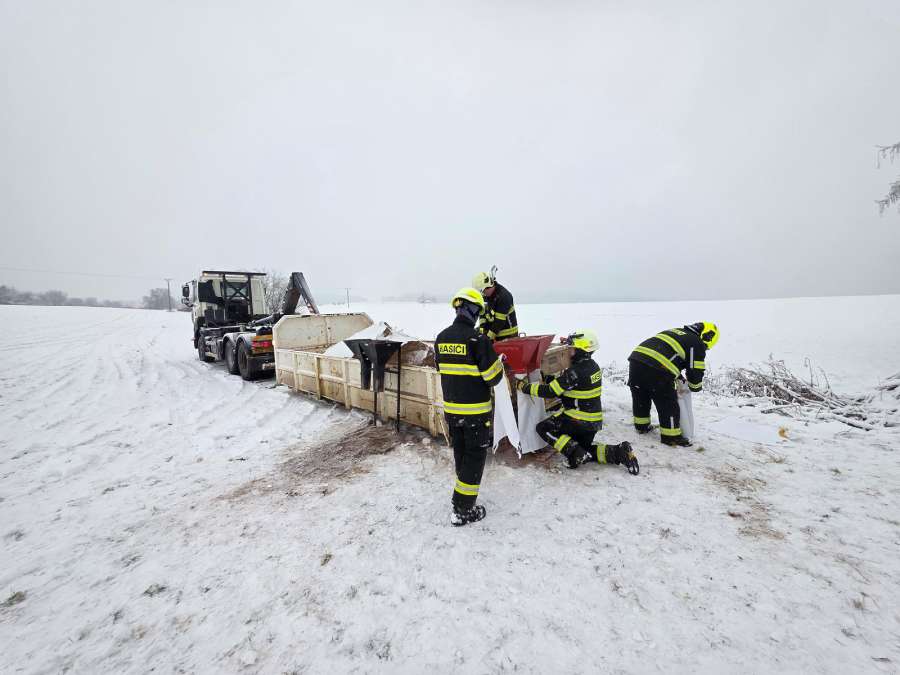 Aby zabránili dalším škodám, nasadili hasiči sorpční hady, velké množství sorbentu a další speciální prostředky. Unikající kapaliny zachytávají do připravených nádob a postupně je přečerpávají do dovezených IBC kontejnerů. K zásahu byl přizván také pracovník životního prostředí a vodoprávního úřadu.