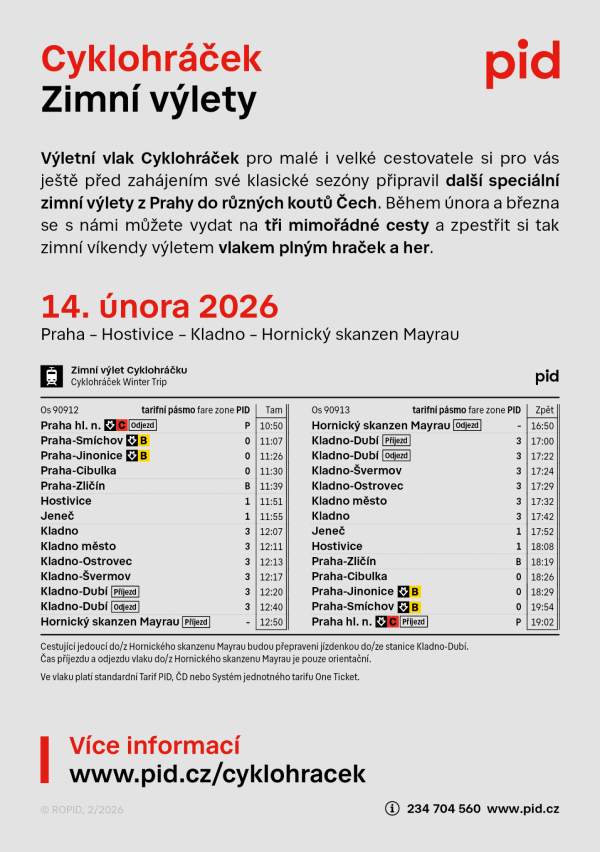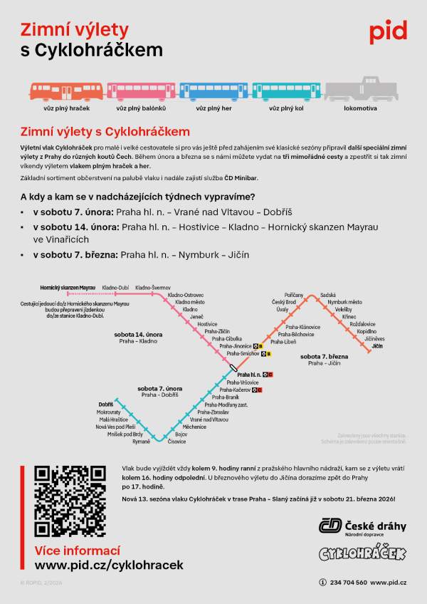 Během února a března 2026 se Cyklohráček vydá na tři speciální výlety.