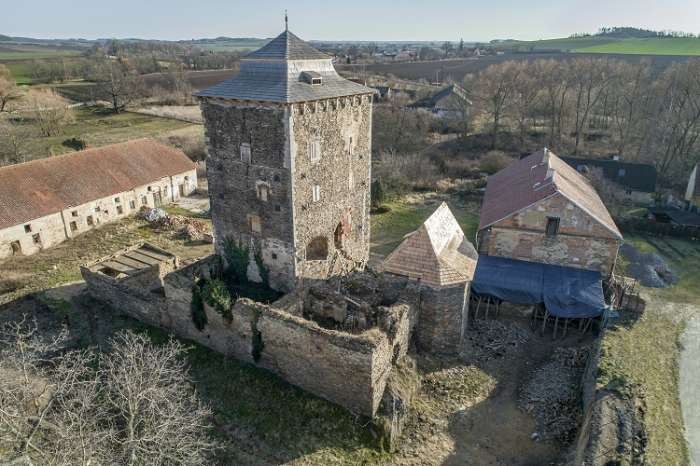 Věž tvrze v Hradeníně čeká nová fasáda. Opravy mají být hotové do konce roku
