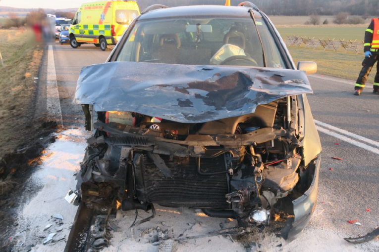 Dopravní nehoda na Bruntálsku: Tři zranění, vzlétl i vrtulník. Muž odmítl převoz do nemocnice
