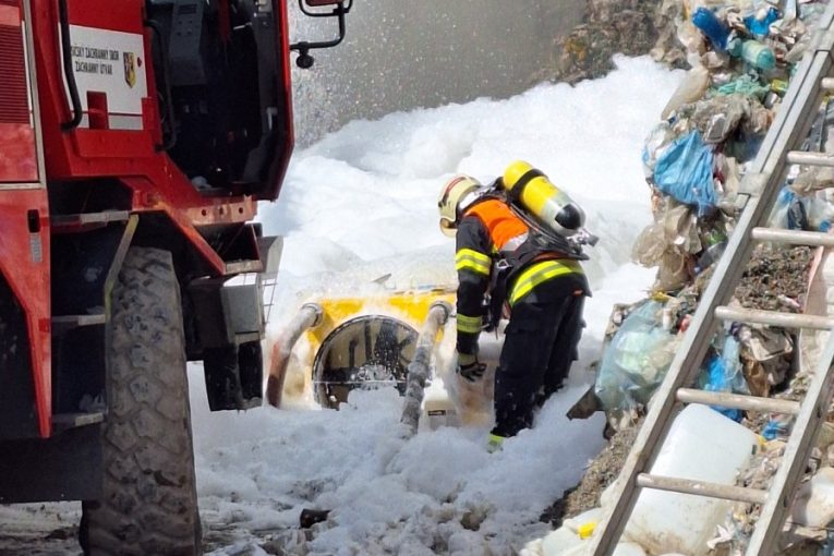 Bílý kouř signalizuje úspěch: Hasiči rozebírají hromadu plastů u Rynholce