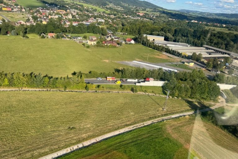 Nákladnímu vozidlu za jízdy upadlo kolo a narazilo do protijedoucího osobního auta. K nehodě letěl vrtulník