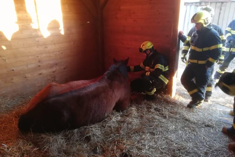 Nebohý kůň nemohl vstát! Pomohli mu až hasiči