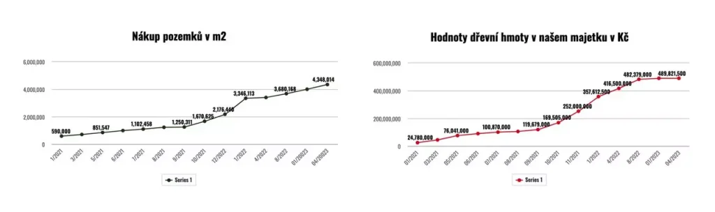 Nákup pozemků v m2 / Hodnoty dřevní hmoty v majetku firmy Wood Seeds v Kč