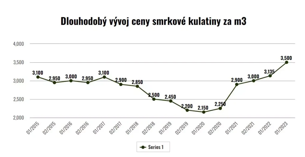Dlouhodobý vývoj smrkové kulatiny za m3