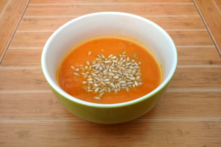 Na talíři posypeme dýňovými semínky a podáváme s pečivem. V horkých dnech ji můžeme podávat také chlazenou.