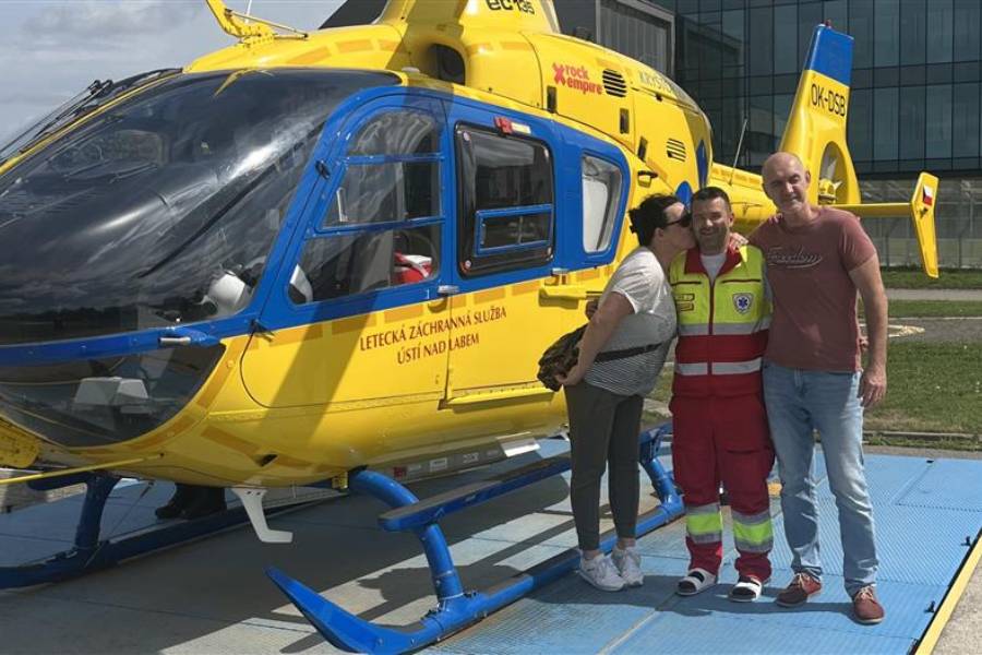 Před pár dny přijela paní Olga s přítelem do Jihlavy a Chotěboře navštívit záchranáře, kteří jim tehdy pomohli. A bylo to dojemné setkání. „Museli jsme se setkat s těmi, kteří nám na pomoc přiletěli a naprosto profesionálně pokračovali v záchraně života, bez ohledu na cokoliv. A nesmělo chybět ani setkání se záchranářkou Veronikou z Chotěboře a jejím jedinečným řidičem Radkem, který za pacientem se sanitou zvládl terén, který vlastně ani zvládnout nejde. Můj přítel všechny tyto skvělé lidi viděl vlastně “poprvé” a přesto to byly chvíle plné radosti, dojetí, ale i humoru, a hlavně velkých díků. NIKDY na ně, na každého z nich nezapomeneme, nikdy nepřestanou mít náš obdiv a úctu!“