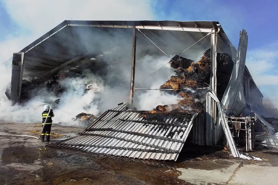 Požár vypukl před druhou hodinou odpoledne a jeho likvidace se protáhla až do večerních hodin. „Kromě hašení hořícího objektu se hasiči zaměřili také na ochranu okolních objektů. Z přilehlého teletníku vyvedli 30 telat,“ uvedla mluvčí krajských hasičů Petra Musilová.