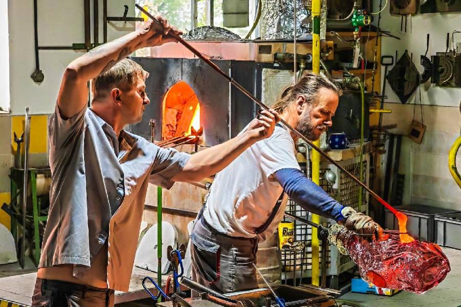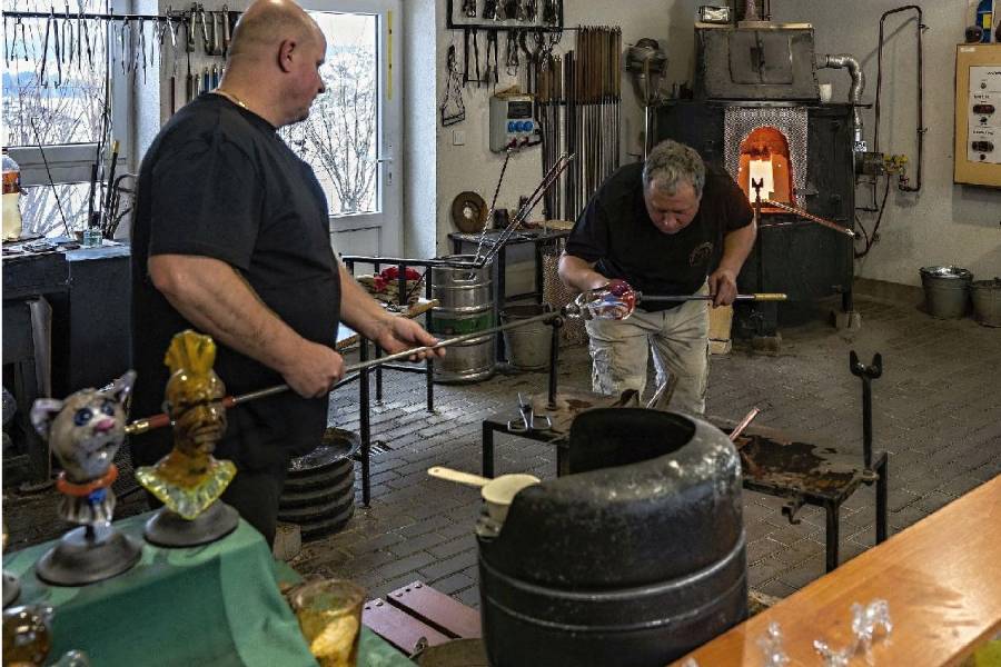 Za krásou ručního skla se můžete vydat i do sklárny Svoboda Karlov. „Letos plánujeme výrobu do pátku 22. prosince, pokud ovšem nebudeme muset dříve měnit pánev, což by obnášelo technologickou pauzu tak na tři týdny,“ vysvětluje Dagmar Vernerová z karlovské sklárny.