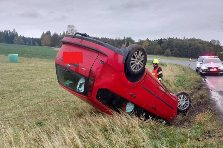 K nehodě došlo v úterý 28. října před 14. hodinou odpoledne. „Řidička s osobním vozidlem Ford zřejmě nepřizpůsobila rychlost jízdy a na mokré vozovce dostala smyk. Vozidlo nezvládla a havarovala mimo silnici, kde se vozidlo převrátilo na střechu,“ uvedla policejní mluvčí Dana Čírtková.