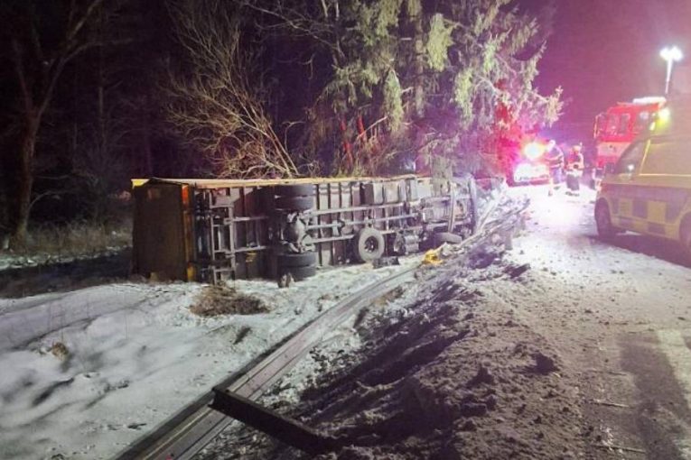 HAVLÍČKOBRODSKO – K nehodě, při které se vážně zranil řidič kamionu, došlo v pondělí ráno u obce Sobíňov na Havlíčkobrodsku. Nákladní vozidlo se po střetu s osobním autem převrátilo a narazilo do stromu.