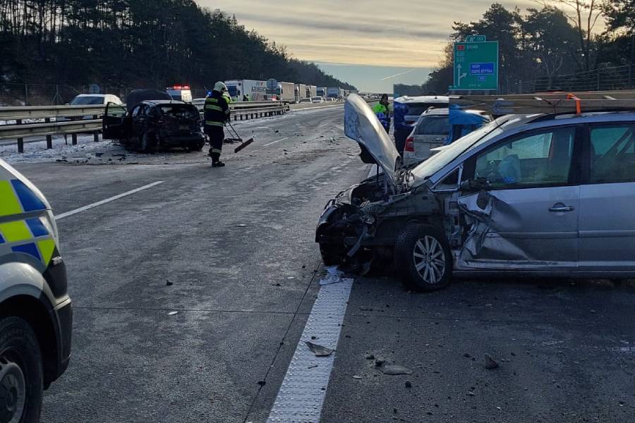 První nehoda se stala po osmé hodině ráno na 152,5 kilometru dálnice ve směru na Brno. „Při nehodě došlo dle současných informací ke dvěma zraněním a nehoda byla s účastí celkem šesti osobních vozidel. Dálnice je ve směru na Brno neprůjezdná,“ sdělila policejní mluvčí Jan Kroutilová.