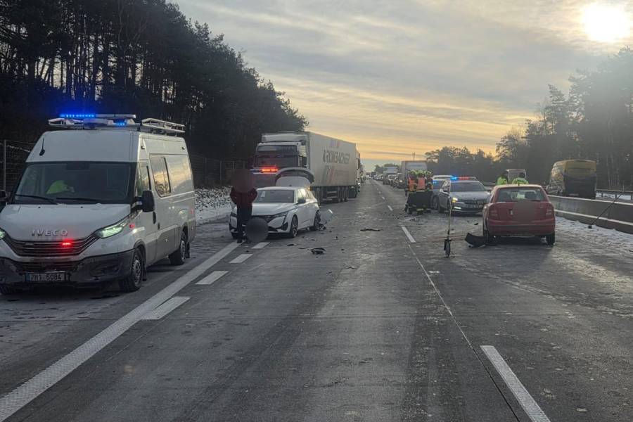 Krátce před devátou hodinou přijali policisté oznámení o další nehodě na 153. km dálnice, tentokrát ve směru na Prahu. Podle policie zde havarovala čtyři vozidla. „Dálnice je v tomto úseku neprůjezdná,“ uvedla Jana Kroutilová.