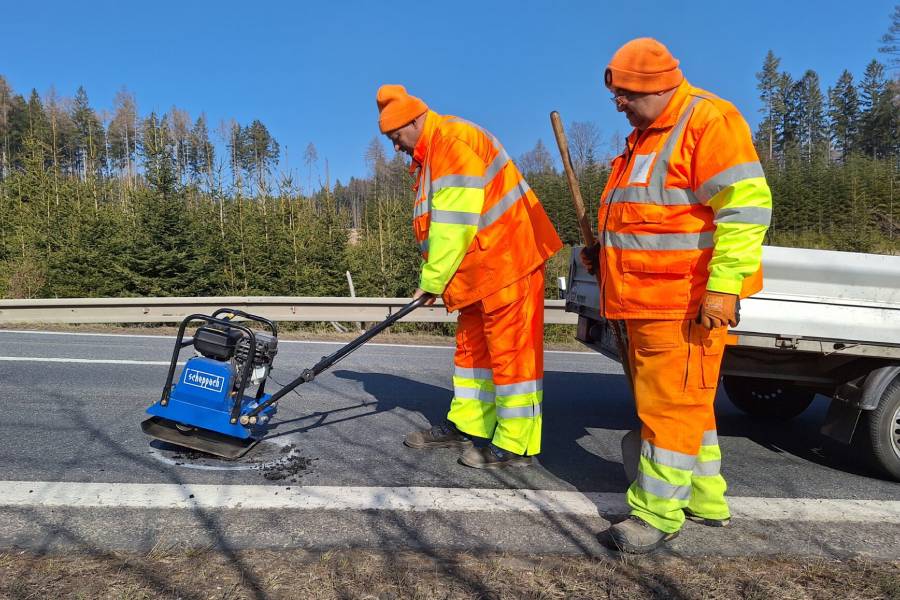 Jejich práce je pestrá. Během roku opravují dopravní značení, čistí odvodňovací systémy komunikací nebo ořezávají dřeviny u silnic. Jakmile ale skončí zima, přichází hlavní úkol: opravit výtluky, které se během ní objevily na vozovkách.