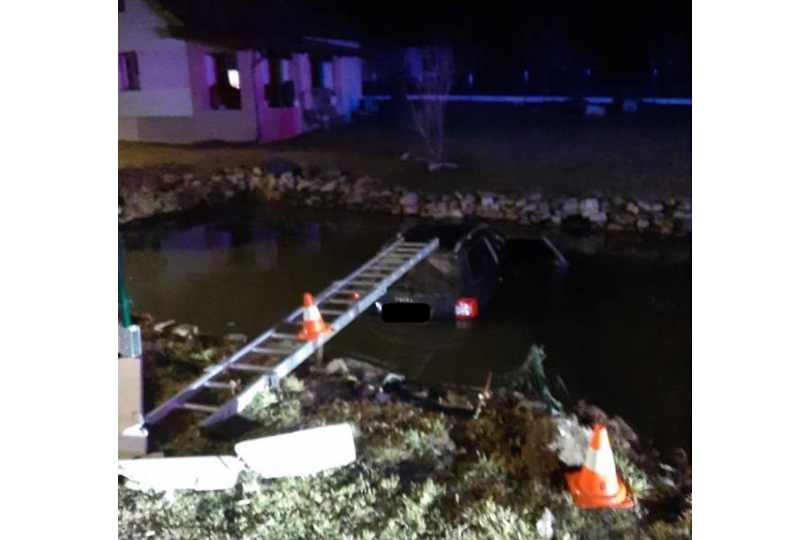 „Řidič po několika metrech narazil do zpevněného stání ze zámkové dlažby a narazil do plastového kontejneru. Po nárazu pokračoval přes místní komunikaci a narazil do oplocení s betonovou deskou a s vozidlem se zastavil v jezírku u domu,“ popsala mluvčí policie Dana Čírtková.