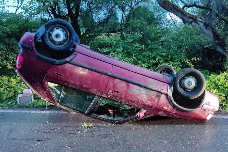 Řidič na Jihlavsku obrátil škodovku na střechu. Po nehodě zmizel