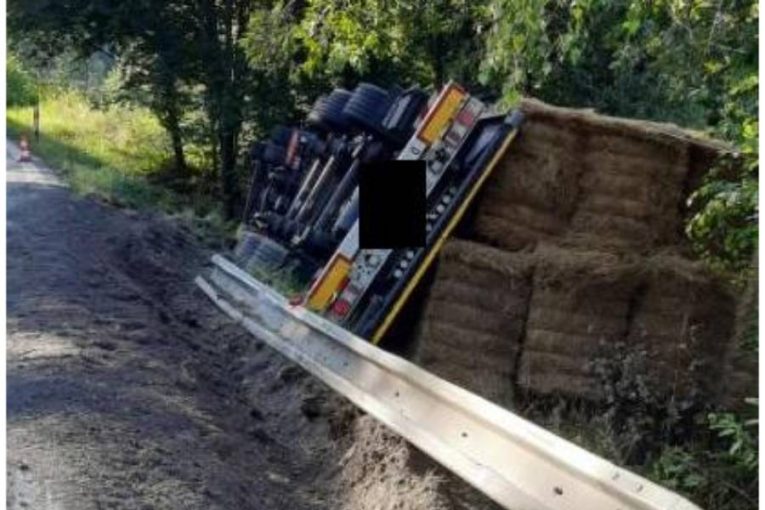 Řidič převrátil u Mrákotína náklaďák se senem. Ukázalo se, že byl opilý