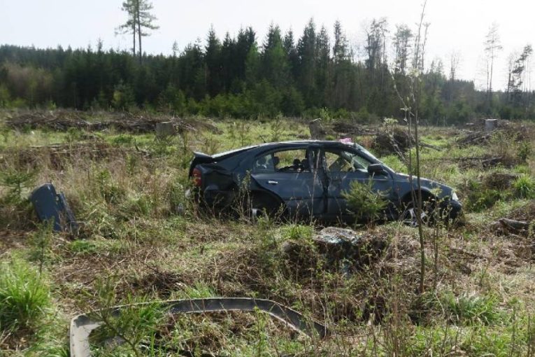 Osmnáctiletý řidič dostal smyk a vylétl ze silnice. Pro spolujezdkyni letěl vrtulník