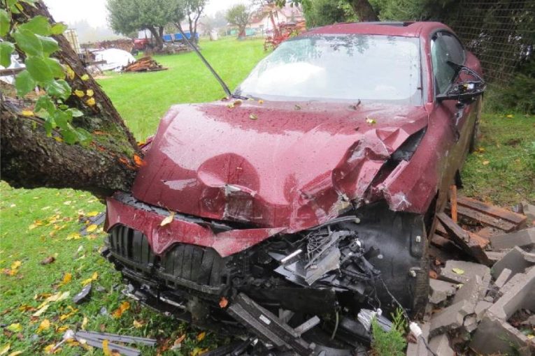 Opilý řidič u Humpolce vjel do zahrady a zdemoloval BMW o strom