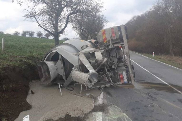 U Náměšti havarovala míchačka s betonem. Zasahovali hasiči