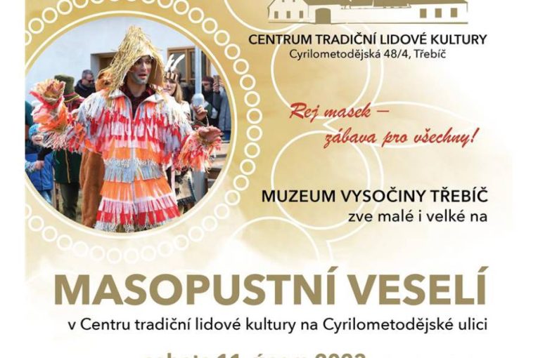 TŘEBÍČ – Třebíčské muzeum připravilo na sobotu 11. února masopustní rej s přehlídkou masek, ale i dalším programem. Na akci vystoupí divadelní spolek Ampulka, folklórní soubor Bajdyš či kapela Horanka. …