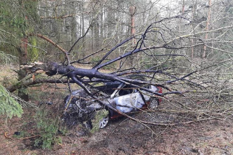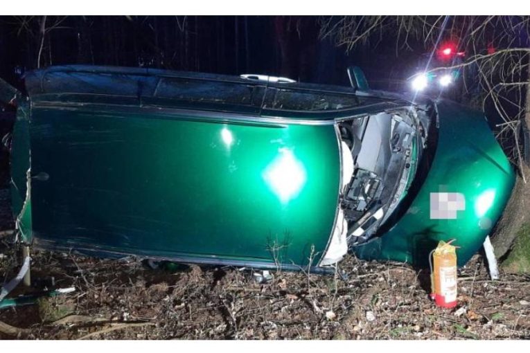 Řidič krátce usnul. Auto vyletělo ze silnice a skončilo převrácené v lese