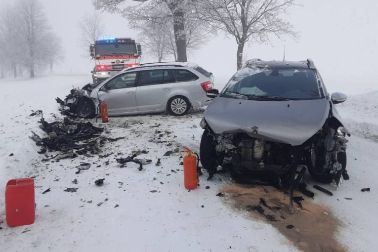 Srážka aut u Řečice na Žďársku. Dva lidé skončili v nemocnici