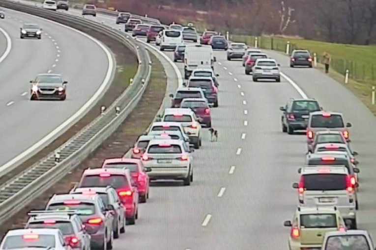 Mezi auty na D1 zmateně pobíhal pes. Policisté se ho pokoušeli odchytit