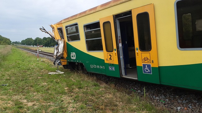 Nehoda se stala dnes krátce po sedmé hodině ranní. „Pětapadesátiletý řidič Mercedesu při jízdě ve směru k místní cihelně na železničním přejezdu označeném dopravní značkou nedal přednost právě přijíždějící vlakové soupravě a došlo ke střetu. Nákladní vozidlo skončilo na boku. Nárazem došlo k vykolejení motorového vlaku,“ popsal policejní mluvčí Radomír Šiška.